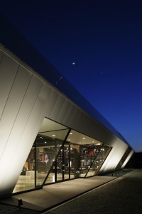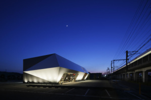 In addition to this enormous fixture interior design and despite the fact that it is about a showroom for a traditional industry, the exterior appearance of the building is made into a futuristic shape close to a spaceship, but this shape was actually inspired by the Japanese traditional origami.