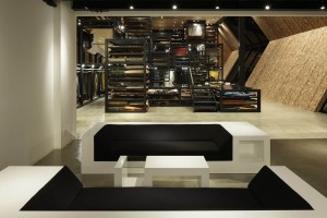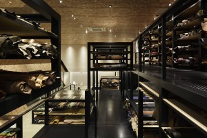 The showroom highlights the enormous range of leather materials that makes the clients strength and meets his wish to communicate and show the diversity of his products. This specificity leads us to focus on the interior design that allows us to better display the project rather than the exterior shape of the building.