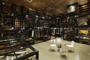 The request was to display over 3000 leather items in a very narrow exhibition space limited to 300 m². In order to respond to this range, a second and third floor must be built, however separating the display into several floors might not leave the wanted impression of the huge diversity of leather products offered by the house. Therefore, the Idea was to build an enormous three-dimensional fixture in a single exhibition room.